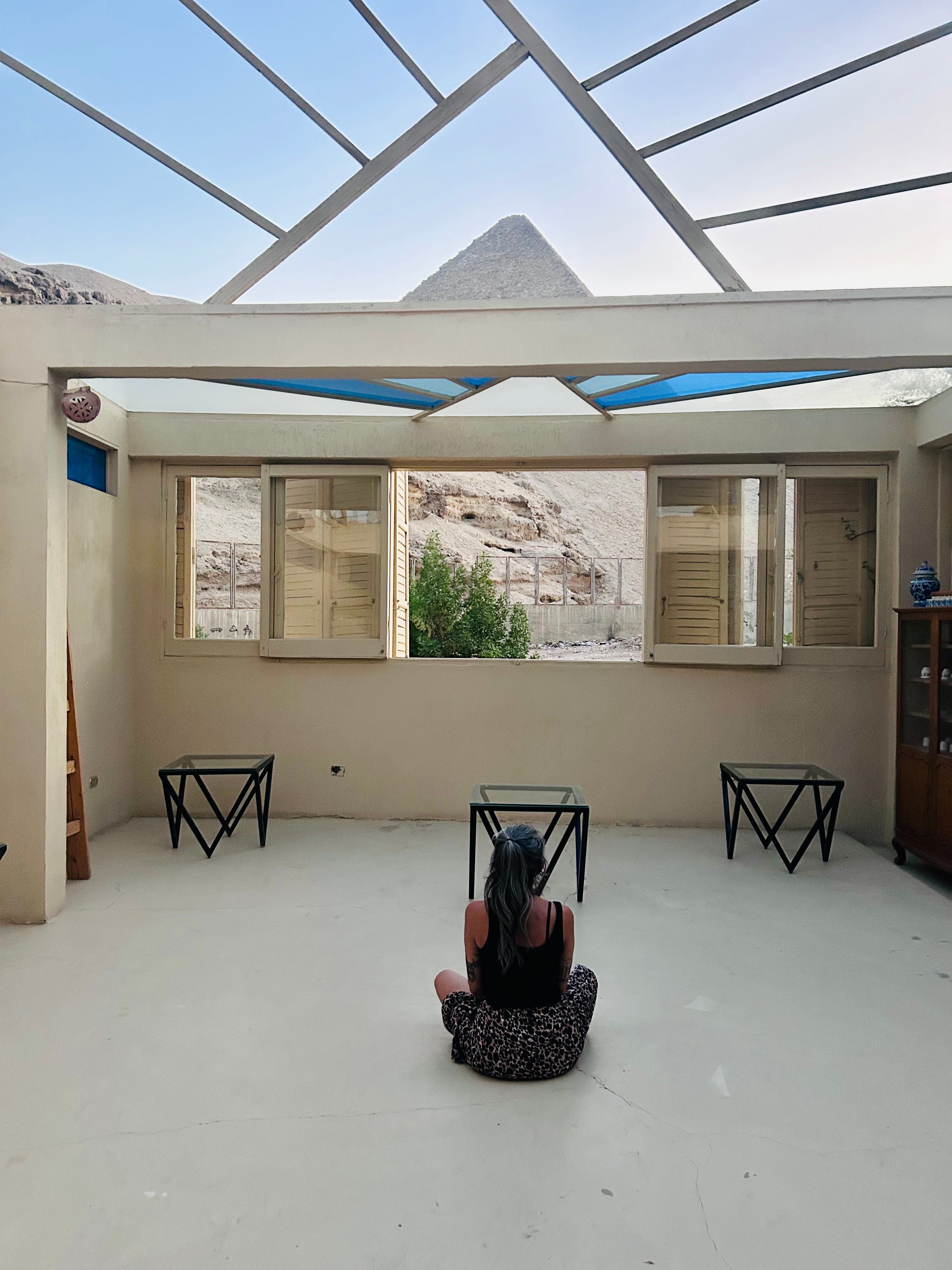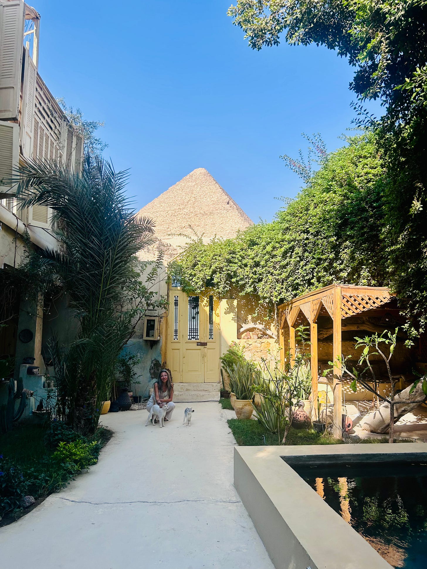 The area surrounding the Pyramids of Giza is not pleasant, let’s agree on that. You’ll find a few pretty shitty hostels, not the nicest eateries and generally a chaotic vibe. So my suggestion is that you 1. Leave quite immediately after visiting the Pyramids (which is absolutely insane in a good way, by the way) or 2. Spend the night at THE most magnificent bed and breakfast House of Cheops. This is a beautiful little sanctuary with a quite ok back drop he he. The House of Cheops is quite simple but still feels fancy. It’s got a lovely pool, one or two cats circulating the court-year and you have the opportunity to enjoy an incredible home cooked Egyptian dinner under the stars.